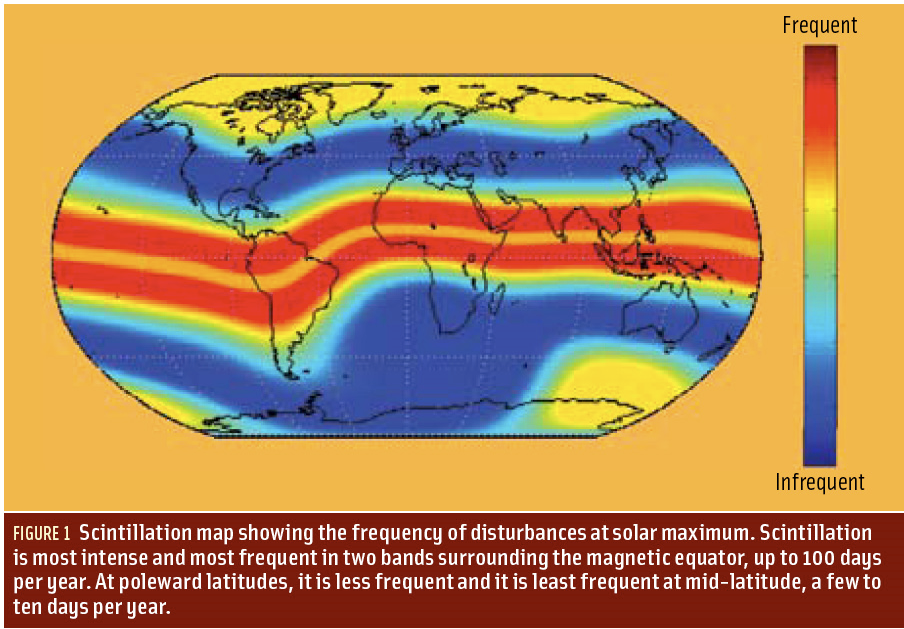 distorts the BPSK stream and makes decoding much harder for some minutes at a time. This effect is not just apparent near the magnetic poles as can be seen in this paper: http://waas.stanford.edu/papers/IWG/sbas_iono_scintillations_white_paper.pdf