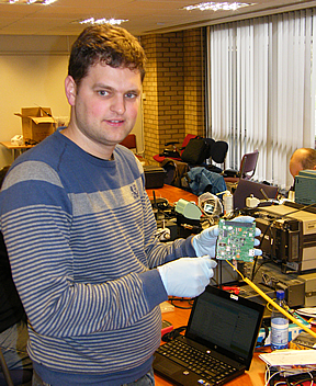 Our two Dutch friends, Wouter Wegglaar and Gerard Aalbers travelled over from Holland by boat, arriving at Harwich early on Saturday morning! Not only did they bring with them the newly developed RF Board, but also various test assemblies on loan from ISIS, for example an AntS simulator.